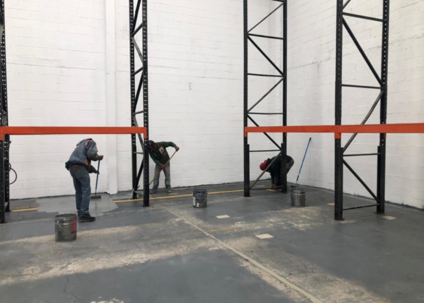 Aplicación de pintura, Reparación de pisos y construcción de foso para pinturas.